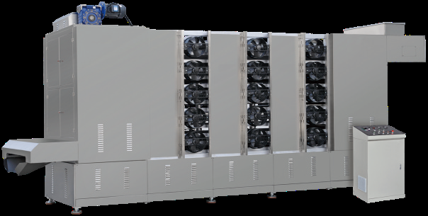 详细信息 GZ-7C冷却干燥机 1.装机功率: 8.4kw 2.生产能力:300-400kg/h 3.外形尺寸:6.4×1.5×3.2m ▪ 烤箱结构紧凑,占地小,干燥面积大、表面积小、散热 少、热效率高。 ▪ 网带和保温板全部采用不锈钢材料,卫生清洁。 ▪ 网带速度可调,方便调整食品在烤箱内的干燥时间。 ▪ 采用双节距滚子链传动,往返式烘干,运转平稳。 ▪ 温度自动控制,配备高效节能燃烧系统,热选分配合理,物料受热均匀,能耗低。