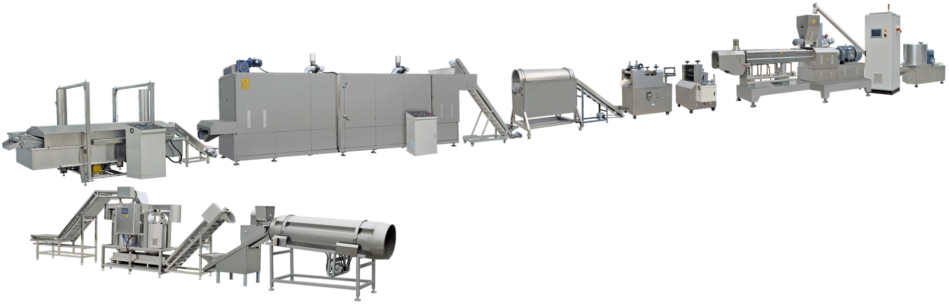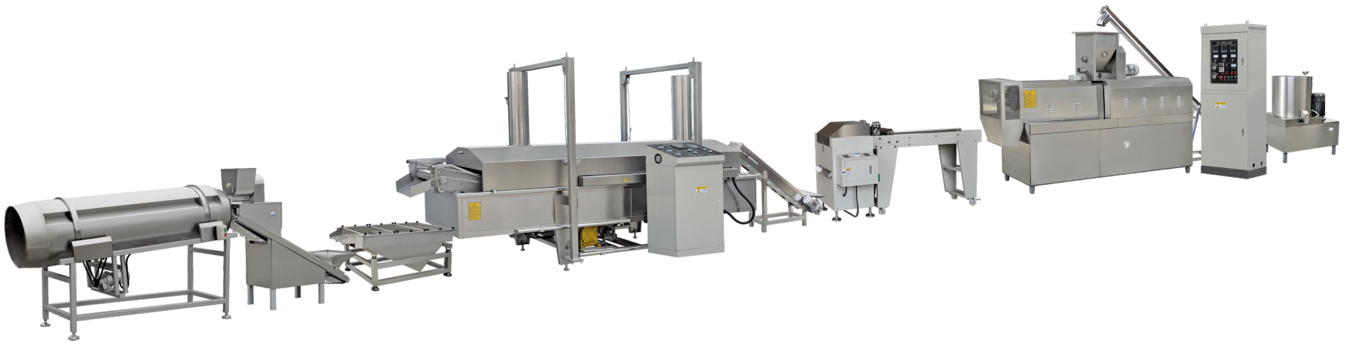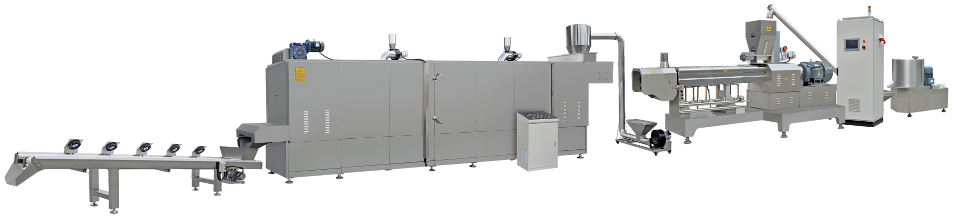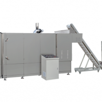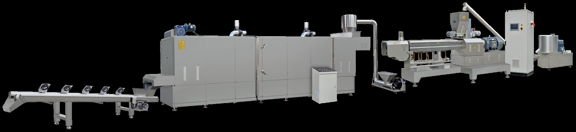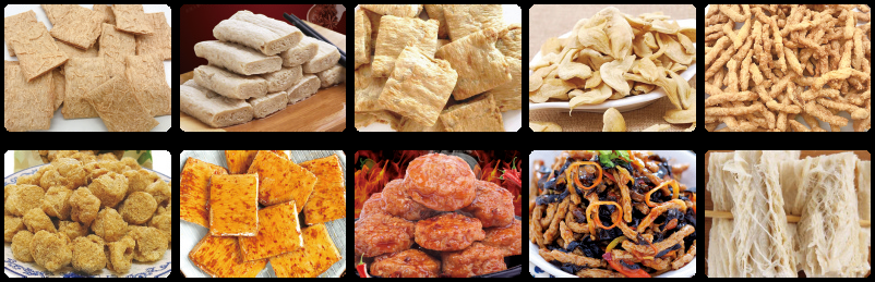 植物组织蛋白食品生产线是我公司根据国内外市场的需求,根据多年的挤压膨化技术,向市场推出的一种生产高蛋白、 高纤维的膨化设备。物料在螺杆的推进下,在机筒内经过高温、高压、高剪切而发生蛋白组织化。生产出的产品肉质感强, 纤维状态好韧性高,深受生产厂家青睐;产品可添加到火腿,香肠,罐头食品以及多种即食食品来增加食品的咀嚼感。