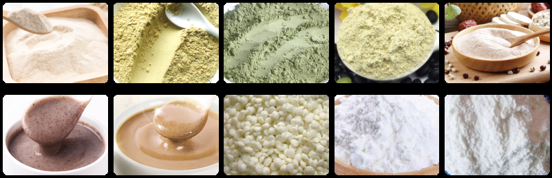 营养粉生产线是以大米、玉米、豆类等各种谷物为原料,经挤压膨化、干燥、粉碎和混合等工艺,可生产各种营养 粉,如婴儿米粉、芝麻糊、五谷粉、豆粉等。生产线从投料到成品自动完成,操作简单、无粉尘泄露、卫生节能,可方便 地配以各种原料和营养素。
