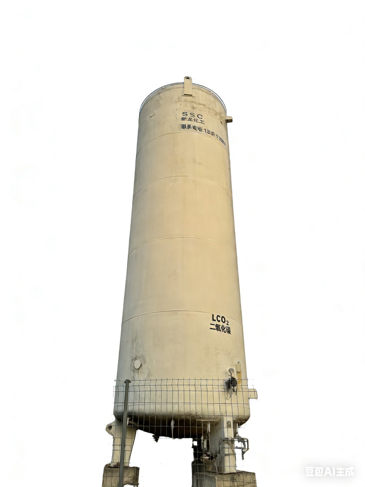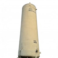 It adopts a double-layer vacuum insulation structure, with a distance of 300 mm between the carbon steel shell and the stainless steel liner, and the interlayer is filled with pearlescent sand and vacuumed. The volume can reach 150 m³ (3.72 m in diameter and 22.45 m in height), with an empty mass of about 50 tons and a full load of 123 tons. It contains 7 process pipelines (such as gas phase pipes, liquid inlet pipes, overflow pipes, etc.), a safety discharge device is installed on the top, and a vacuum pipe and a vacuum measuring pipe are configured at the bottom. The outer wall integrates safety facilities such as fire sprinklers and lightning rods.